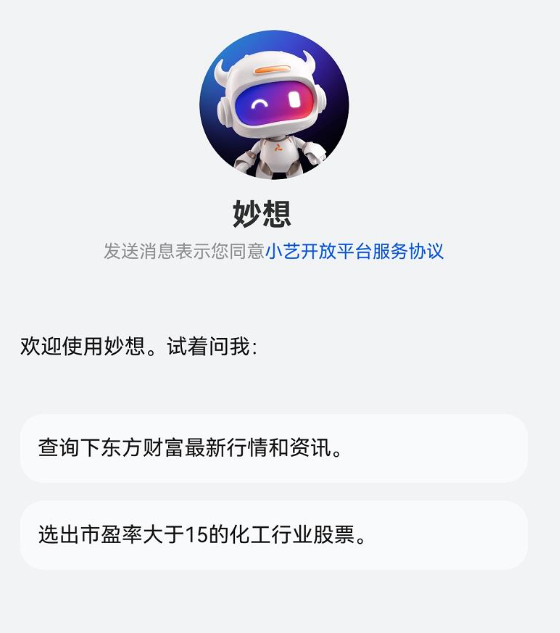 比如东方财富旗下的“妙想”金融助手,作为金融行业首款上架小艺智能体市场的鸿蒙应用智能体,它不再是一个冷冰冰的搜索框,而是一个全天候待命、专业且懂你的私人投资顾问。